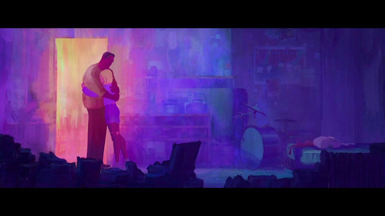 In questo acclamato film d’animazione, infatti, i colori sono parte integrante dello storytelling; la scena in questione, in particolare, mostra come i colori siano stati usati per comunicare agli spettatori il rapporto fra due personaggi: Gwen e suo padre.
