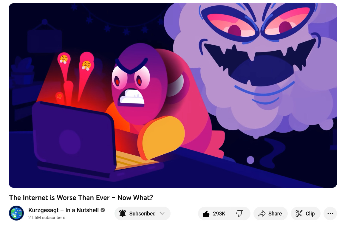 La visione di Gaiman sembra essere confermata da questo video di Kurzgesagt che riflette sulla rabbia che circola su internet e su un possibile futuro post-social network. Anche qui la soluzione proposta è un ritorno a community più piccole e indipendenti dagli algoritmi.